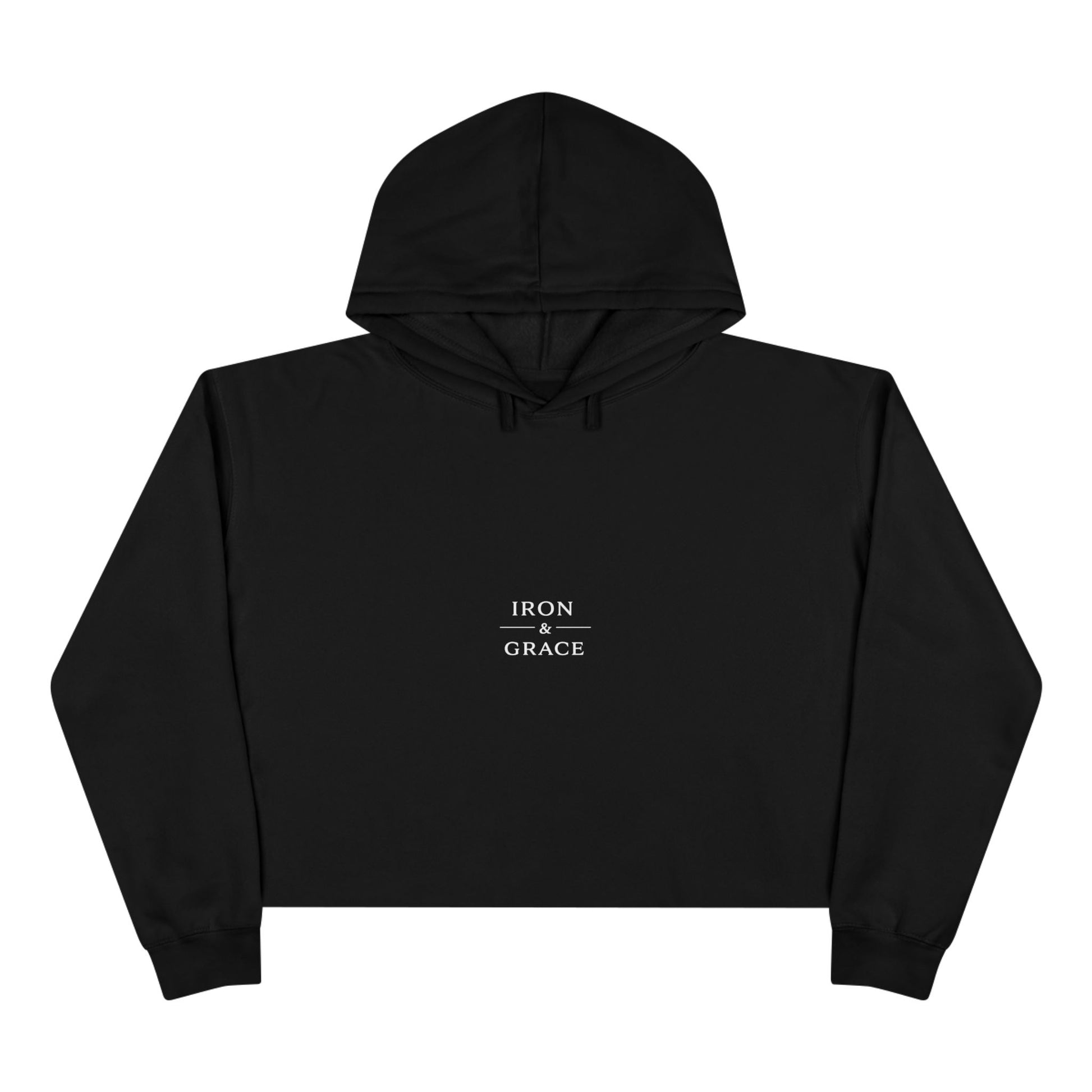 The Iron & Grace Cropped Hoodie is designed for those who carry both discipline and devotion. Minimal on the front, intentional on the back — this piece reflects strength refined by grace.